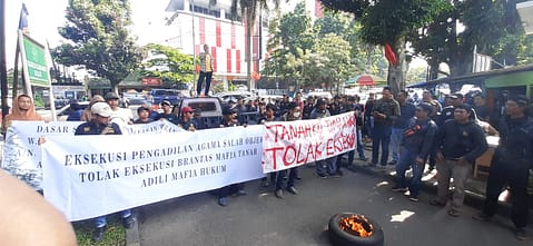 Massa Pemuda Nasionalis Bogor dan sejumlah Ormas di Bogor, menilai bahwa eksekusi lahan di Kelurahan Katulampa Kota Bogor, atas perintah dari mafia tahan yang diduga berada di dalam Pengadilan Agama Kota Bogor.
